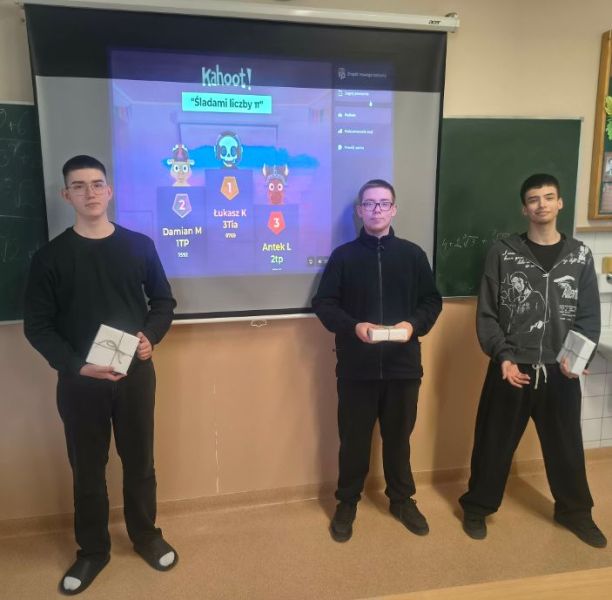 Z tej okazji chętni uczniowie na długich przerwach wzięli udział w dwóch quizach matematycznych: „Śladami liczby π” oraz „Matematyczne wyzwanie”.