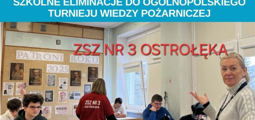 4 lutego w Zespole Szkół Zawodowych Nr 3 im. Kardynała Stefana Wyszyńskiego w Ostrołęce odbyły się coroczne szkolne eliminacje Ogólnopolskiego Turnieju Wiedzy Pożarniczej. W rywalizacji wzięło udział ośmiu uczniów, którzy zmierzyli się z wymagającymi pytaniami sprawdzającymi wiedzę z zakresu ochrony przeciwpożarowej, bezpieczeństwa oraz zasad udzielania pomocy.